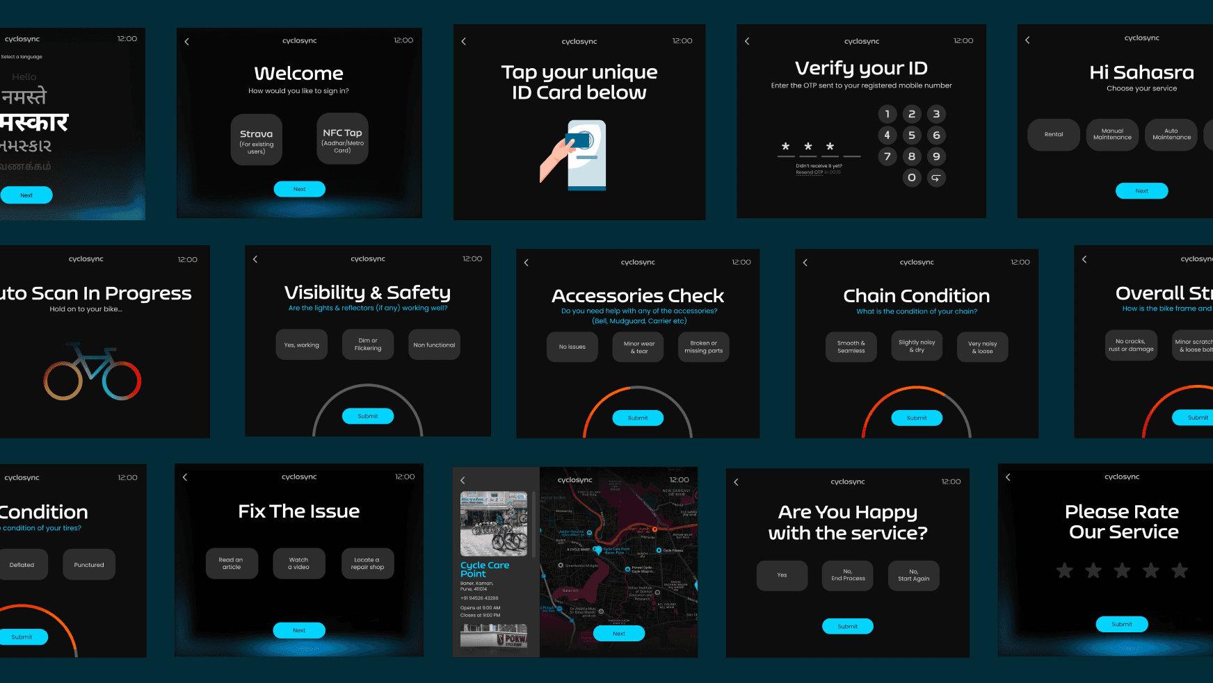 A smart cycling kiosk system designed to promote urban cycling through AI-powered maintenance, rentals, and real-time mobility support.