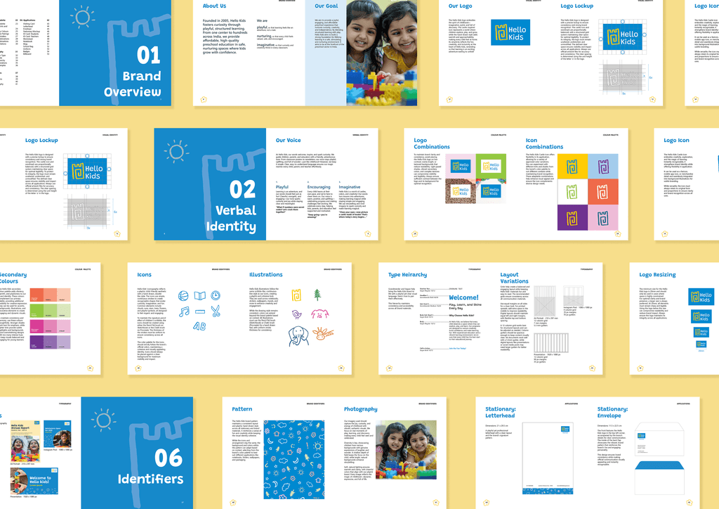 A vibrant rebranding project for Hello Kids, capturing the magic, joy, and creativity of childhood learning.