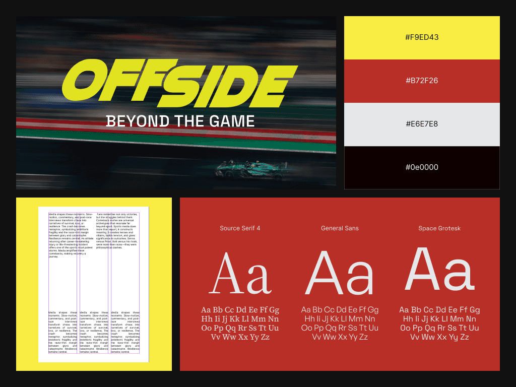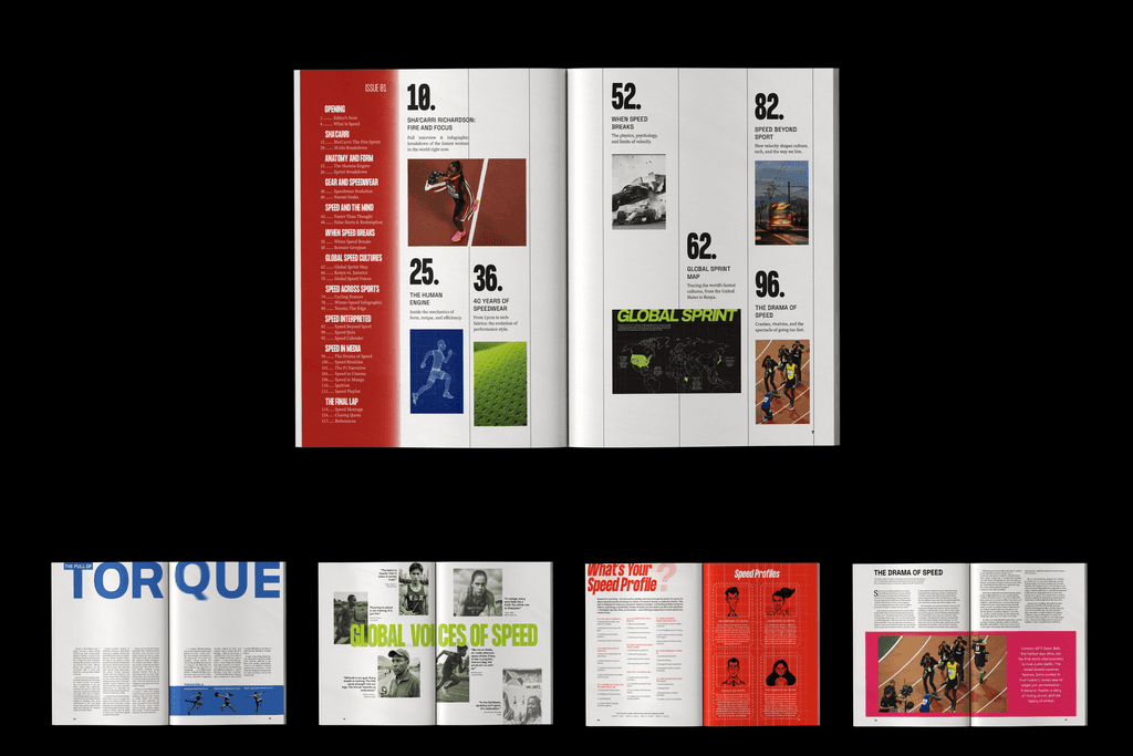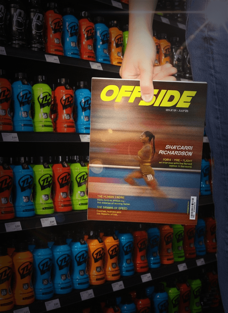 OFFSIDE is a contemporary sports magazine that explores the emotion, design, and culture behind athletic performance through dynamic layouts, bold typography, and storytelling that moves as fast as its subject.